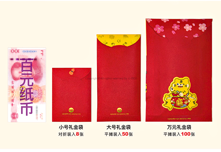 原品特大号万元彩色虎年礼金袋(3个装)-万事大吉/福虎盈门