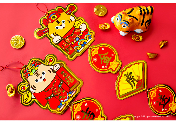 原品虎年异形对装彩色门贴-招财进宝/福气满满/大福大贵