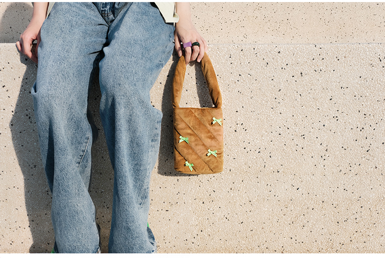 YIZI胖胖系列腋下包手拎包-蝴蝶结黄/缎面紫/细格毛毛