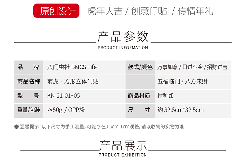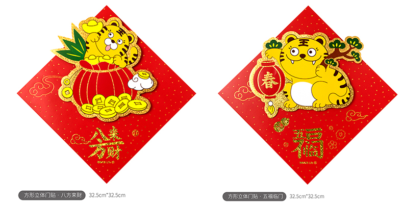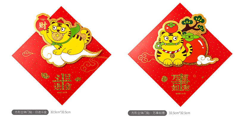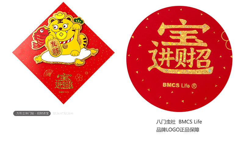 八门虫社方形立体门贴-万事如意/日进斗金/招财进宝/五福临门/八方来財