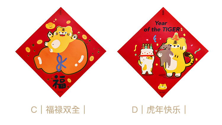 原品虎年彩色门贴-虎年开运/迎春接虎/福禄双全/虎年快乐