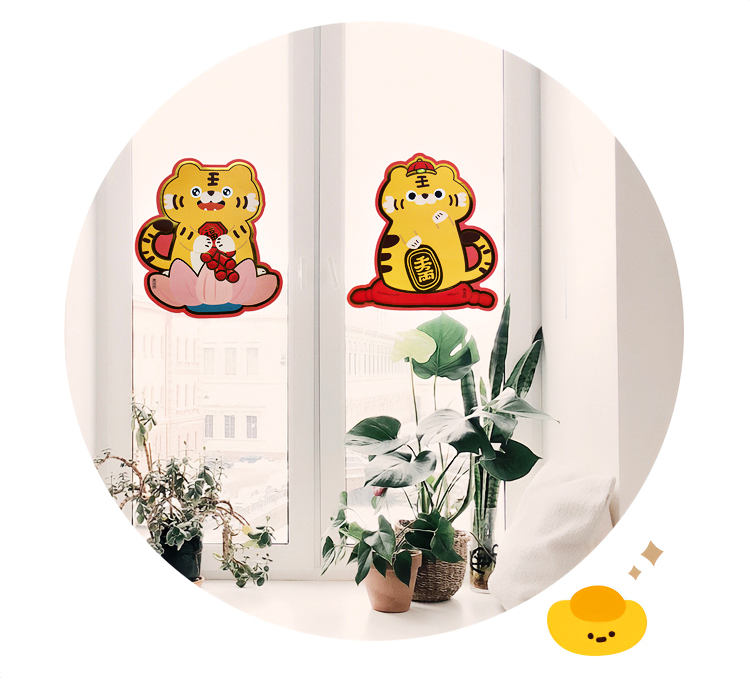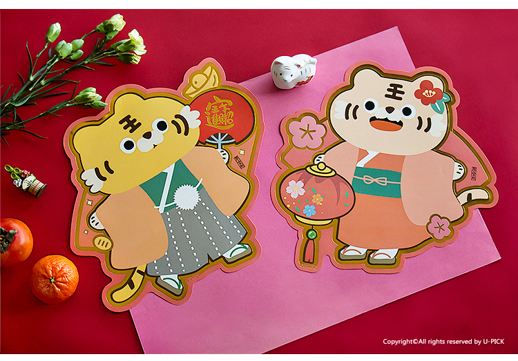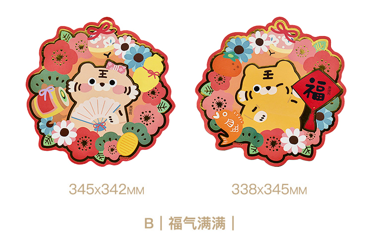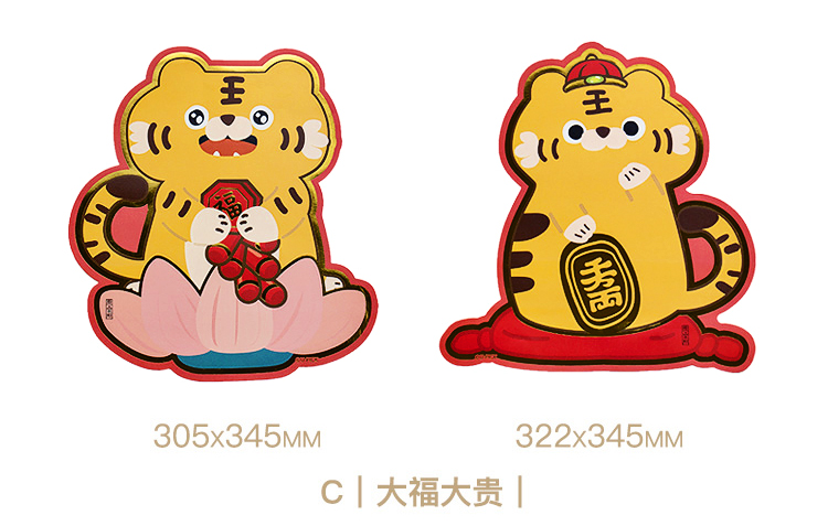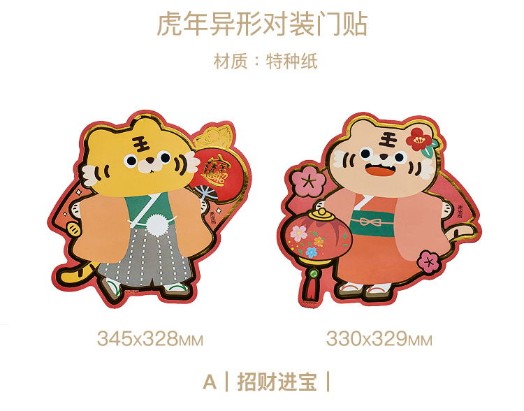原品虎年异形对装彩色门贴-招财进宝/福气满满/大福大贵