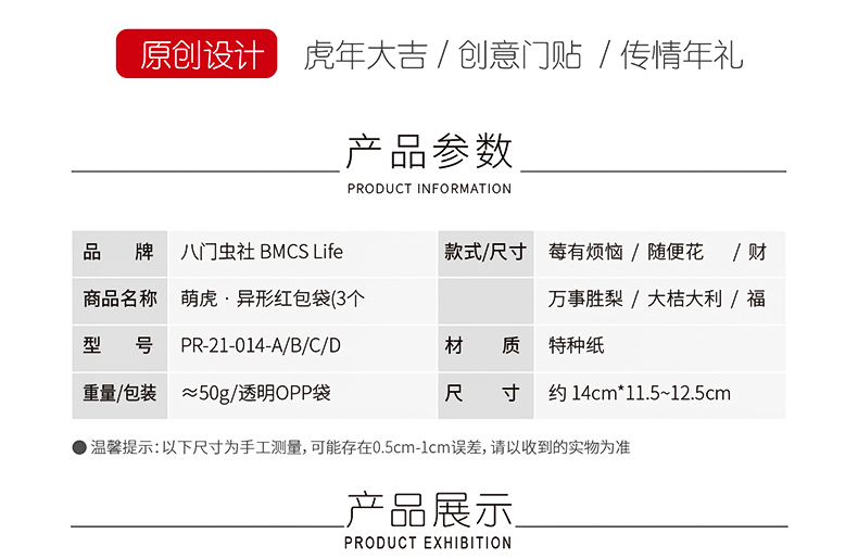 八门虫社萌虎异形红包礼金袋-莓有烦恼/随便花/万事胜梨/大桔大利/福/财