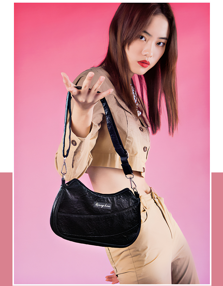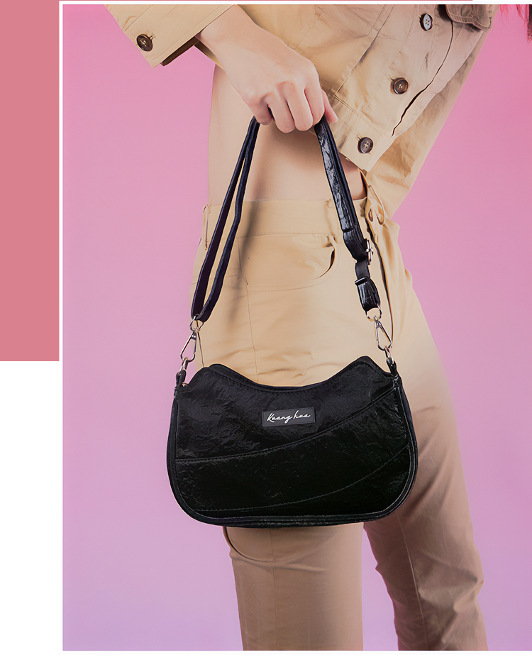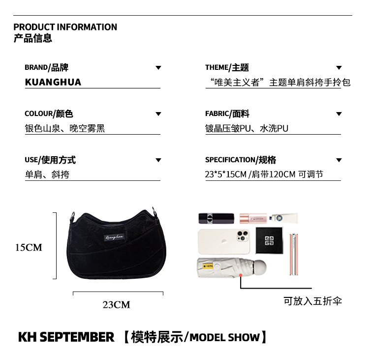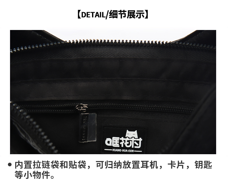 哐花村Aesthete唯美主义者主题单肩斜挎手拎包-黑色/银色