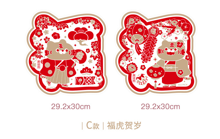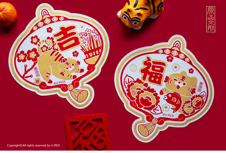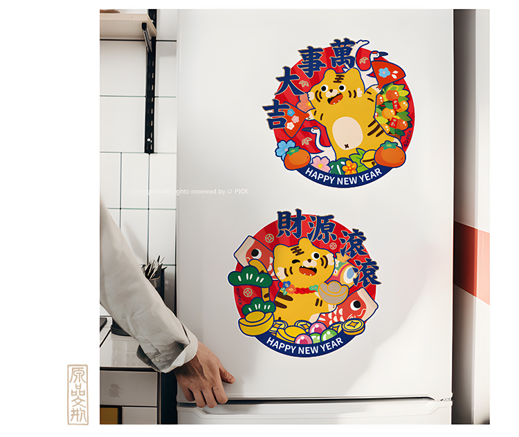 原品虎年pvc膜静电贴-财源滚滚/虎年大吉/福虎贺岁