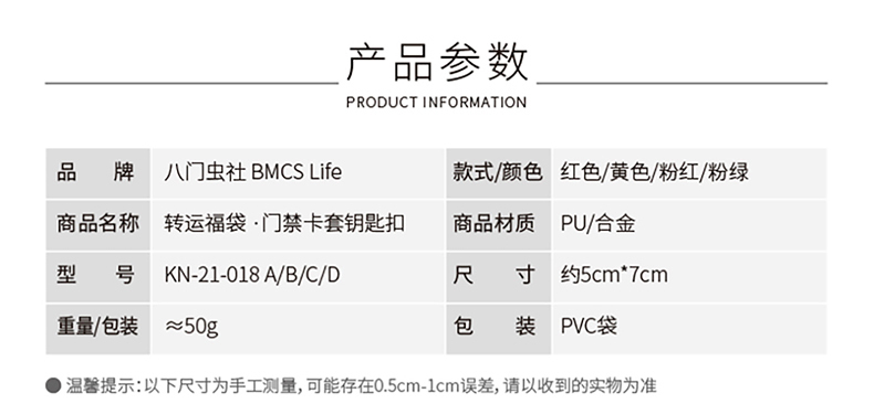 八门虫社时来运转门禁卡套钥匙扣-红色/黄色/粉红/粉绿