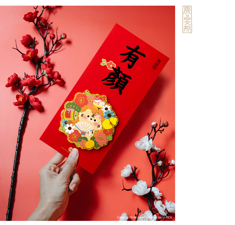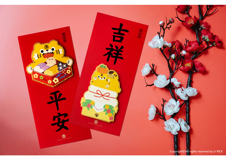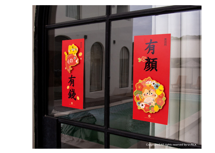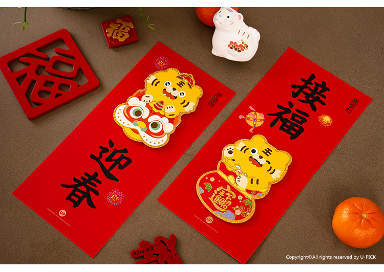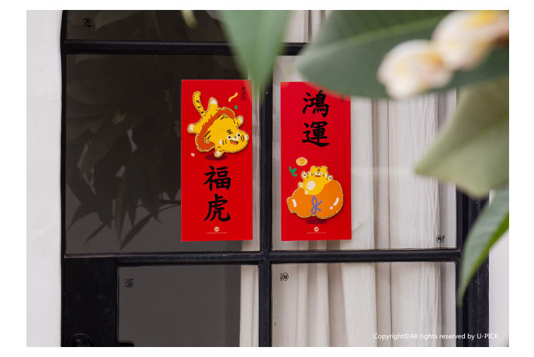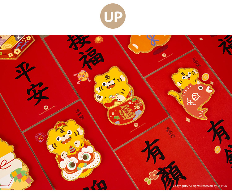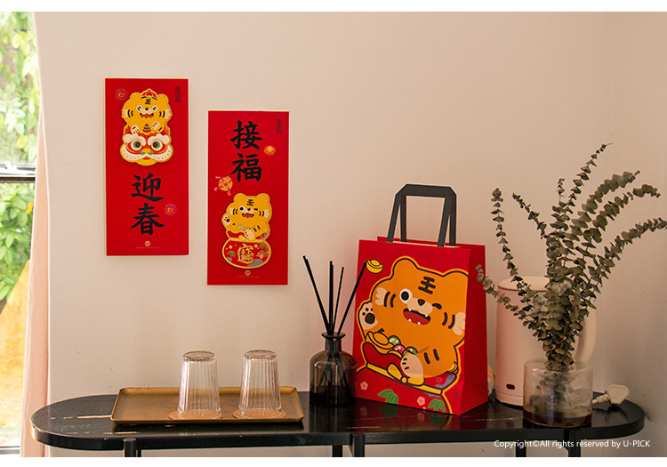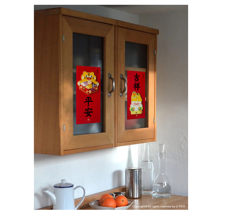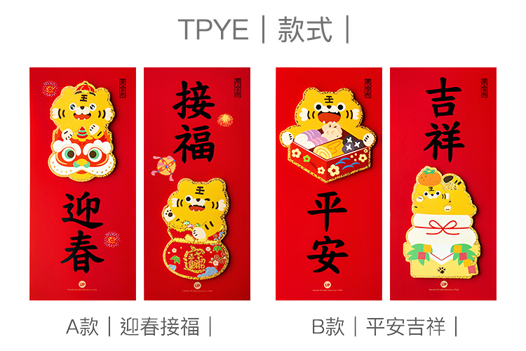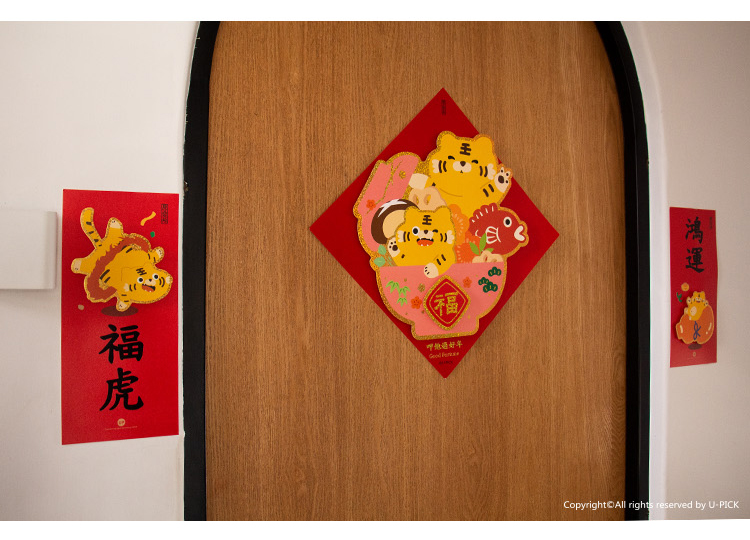 原品虎年彩色立体对装小门贴-迎春接福/平安吉祥/福虎鸿运/有钱有颜
