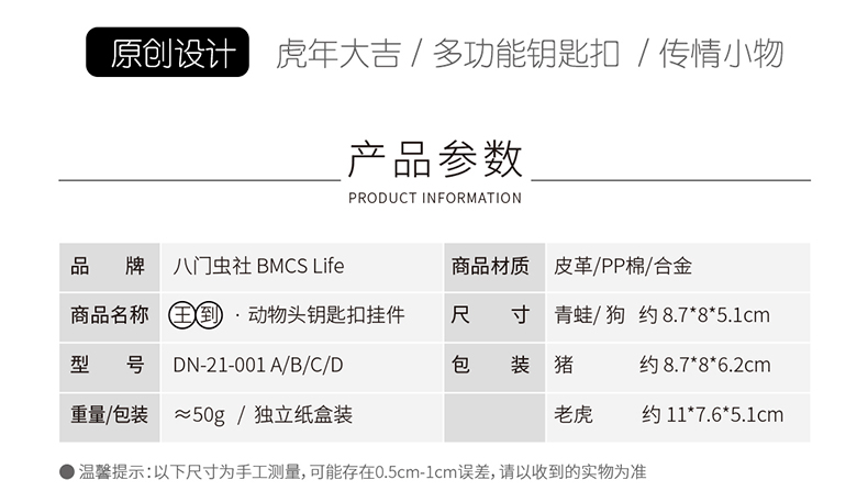 八门虫社王到动物头钥匙扣挂件-青蛙/狗/猪/老虎