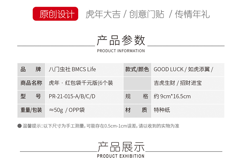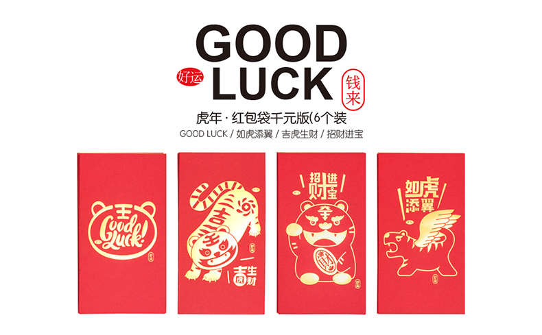 八门虫社虎年千元版红包袋-goodluck/如虎添翼/吉虎生财/招财进宝