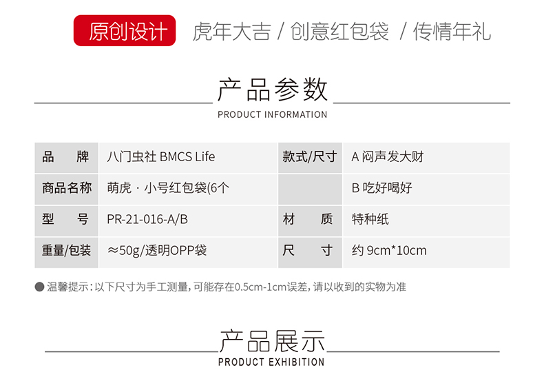 八门虫社萌虎异形红包礼金袋-莓有烦恼/随便花/万事胜梨/大桔大利/福/财