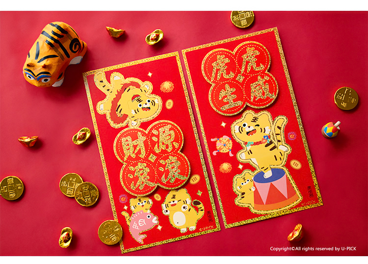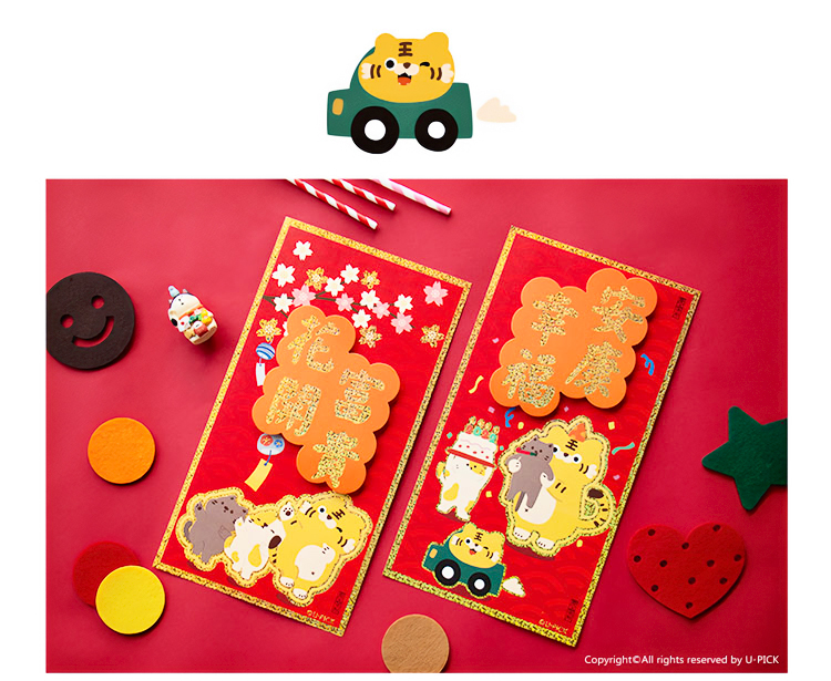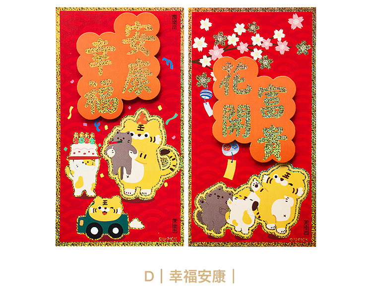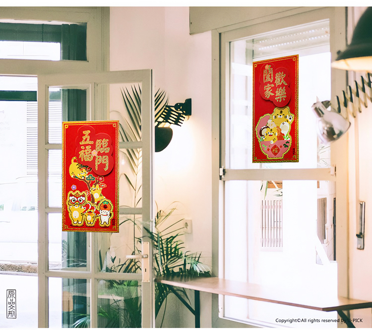 原品虎年彩色立体对装小门贴-迎春接福/平安吉祥/福虎鸿运/有钱有颜