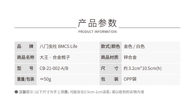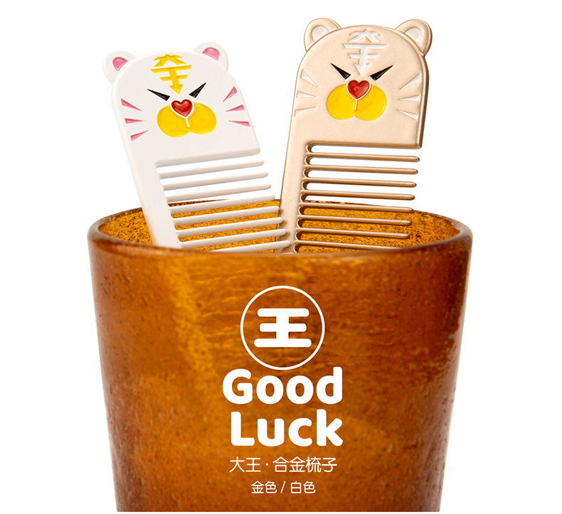 八门虫社虎年大王合金梳子-金色/白色