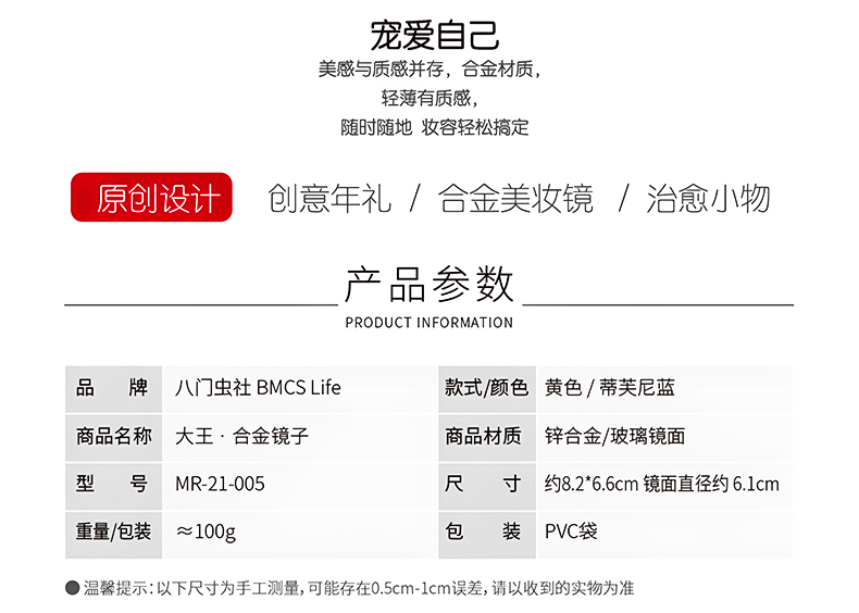 八门虫社大王合金镜子-黄色/蒂芙尼蓝