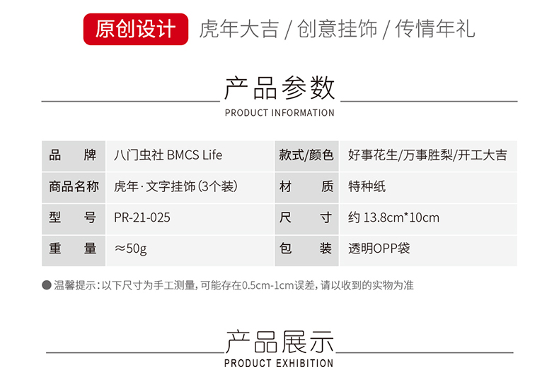 八门虫社虎年文字挂饰(3款套装)