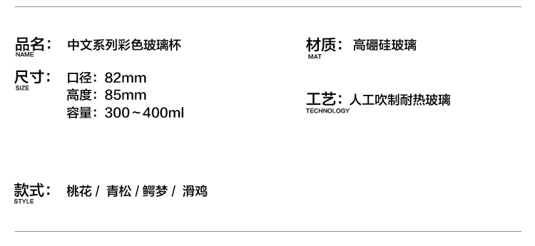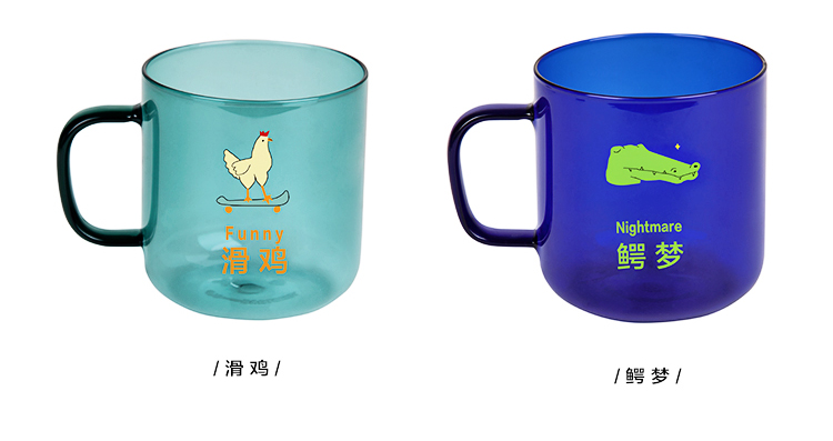 YIZI中文系列彩色灯工玻璃杯-桃花/青松/鳄梦/滑鸡