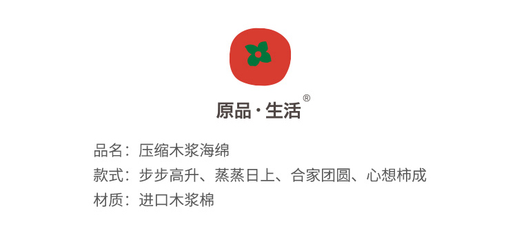 原品压缩木浆海绵-步步高升/蒸蒸日上/合家团圆/心想柿成