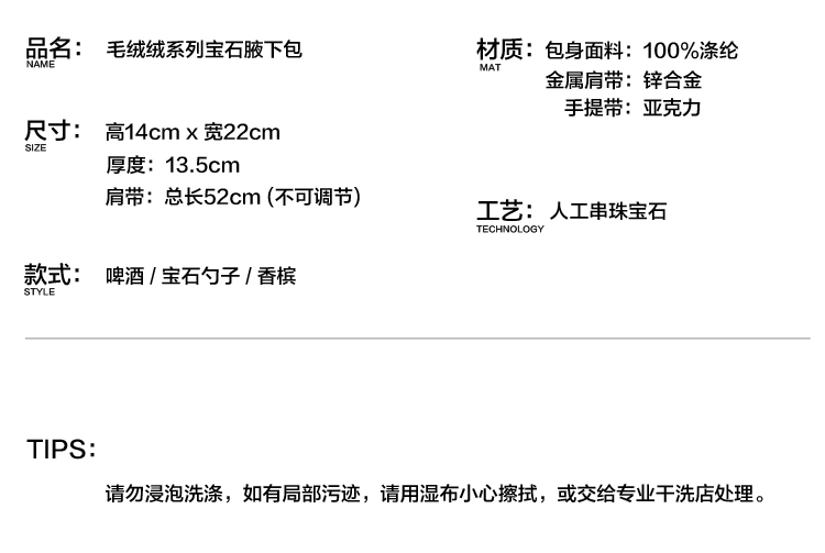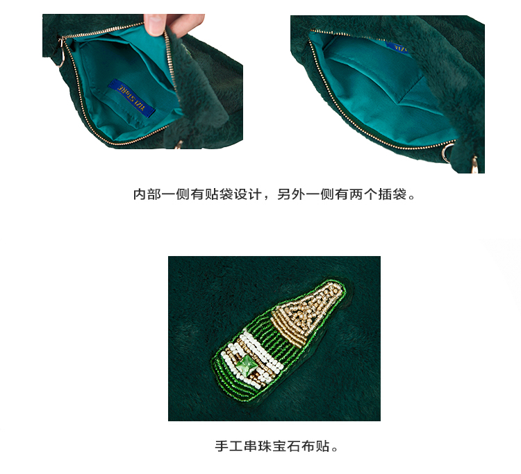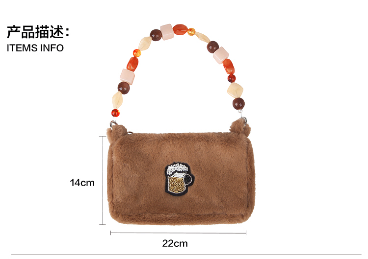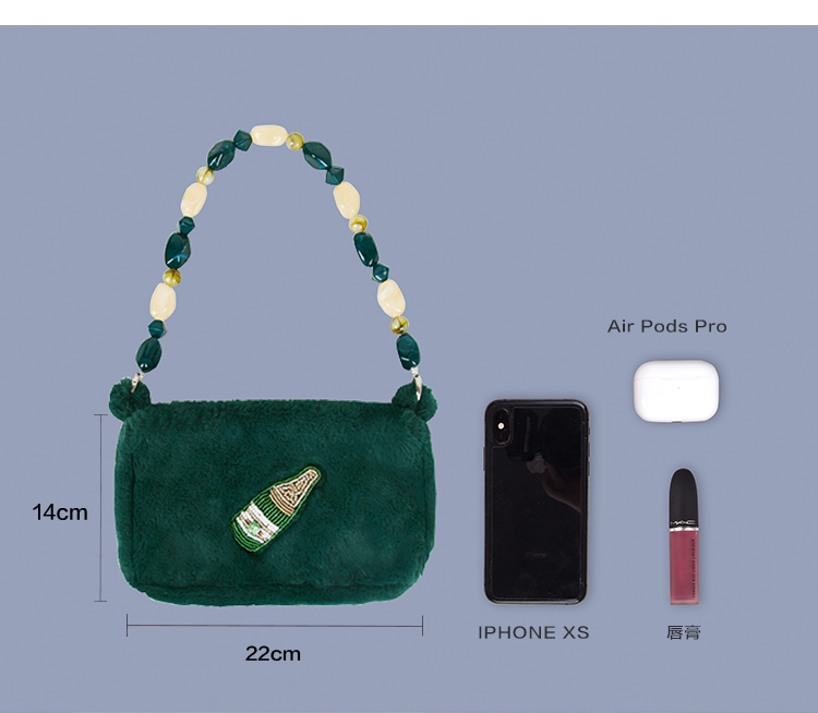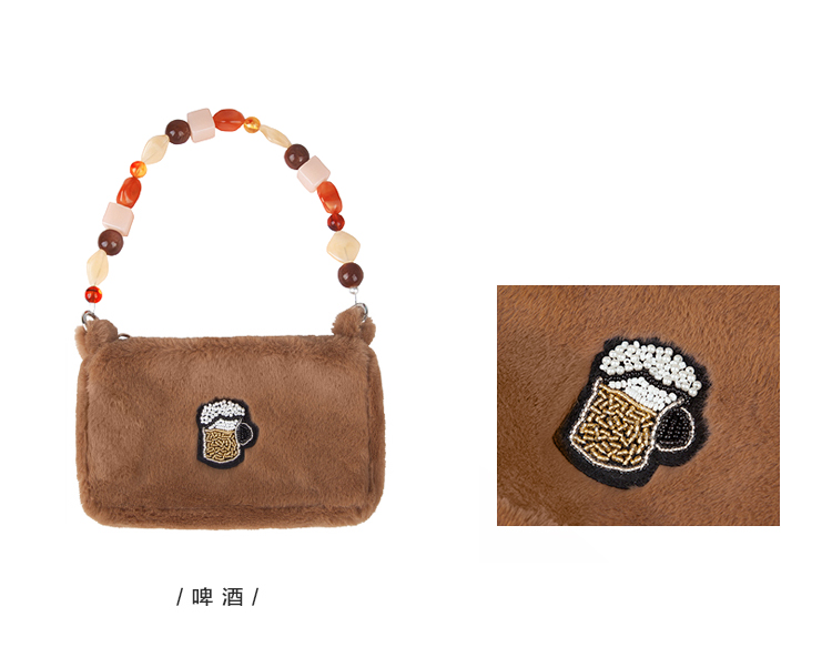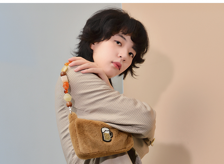 YIZI毛绒单肩腋下包-啤酒/宝石勺/香槟
