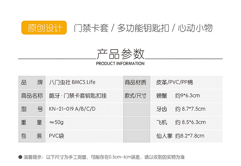 八门虫社龅牙门禁卡套钥匙扣挂件-螃蟹/牙齿/飞机/仙人掌