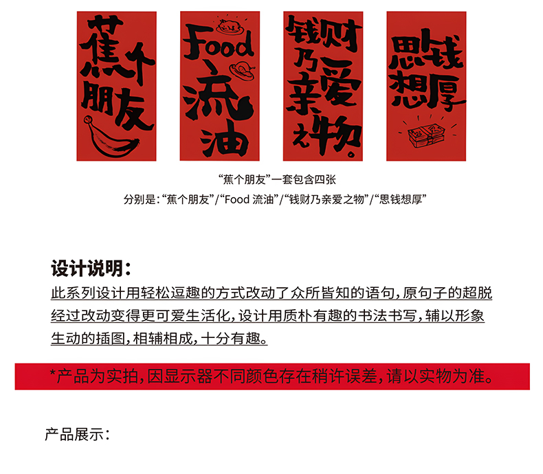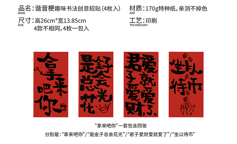YIZISTORE趣味门贴小对联(4枚入)-蕉个朋友/拿来吧你