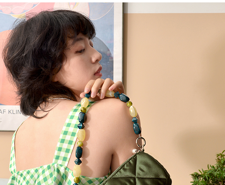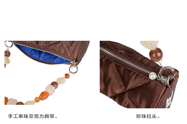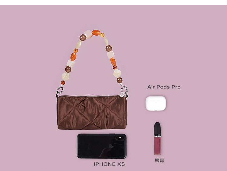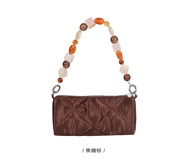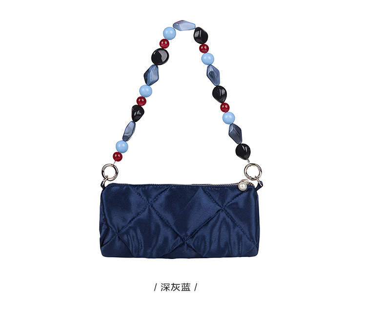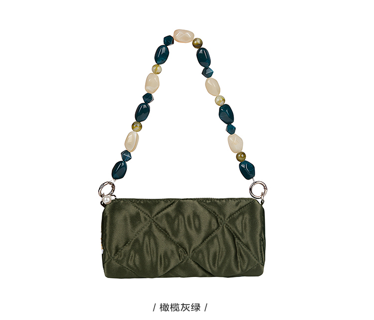 YIZISTORE圆筒包系列菱格串珠单肩手提腋下挎包-深灰蓝/焦糖棕/橄榄灰绿