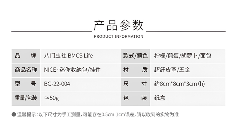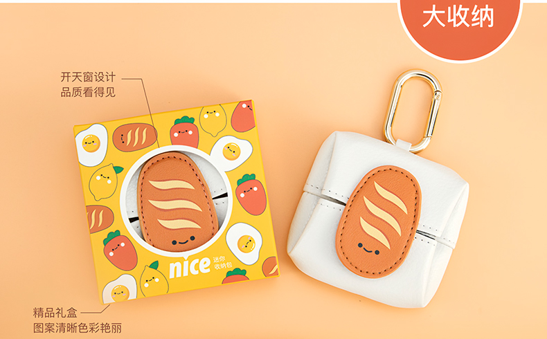 八门虫社迷你收纳包挂件-柠檬/煎蛋/胡萝卜/面包