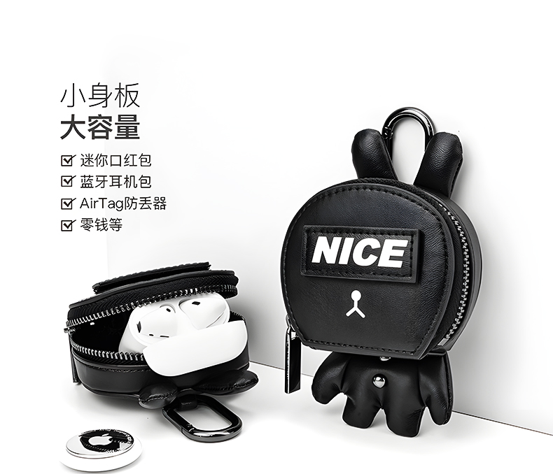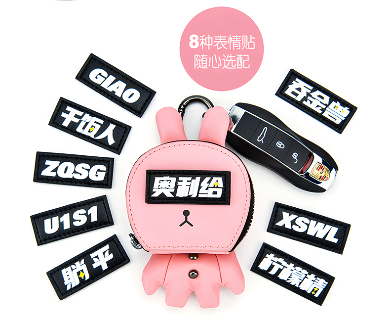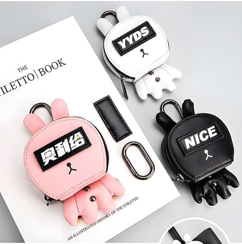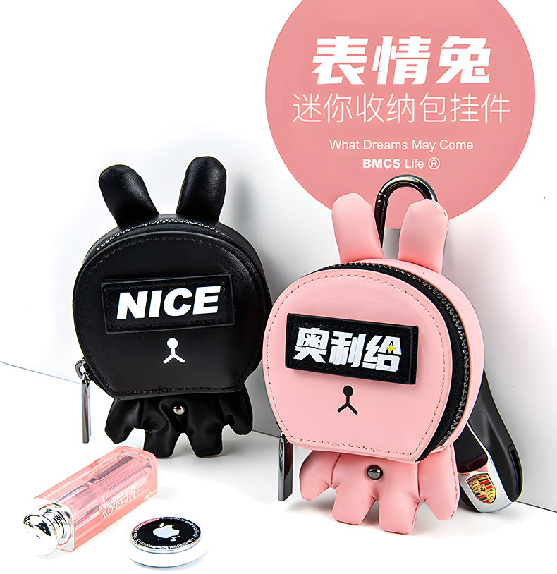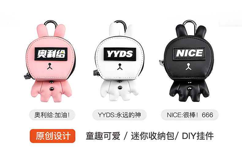 八门虫社文字表情兔迷你收纳包挂件-粉红奥利给/白色YYDS/黑色NICE/表情选配