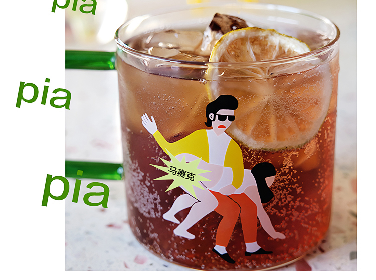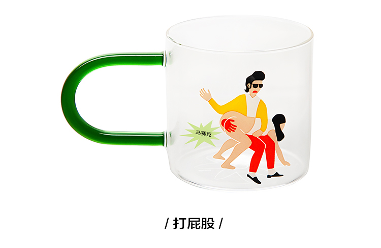 YIZI信手涂鸦系列长柄玻璃杯-打屁股/接吻