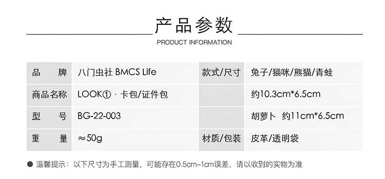 八门虫社LOOK1卡套证件包-兔子/猫咪/熊猫/胡萝卜