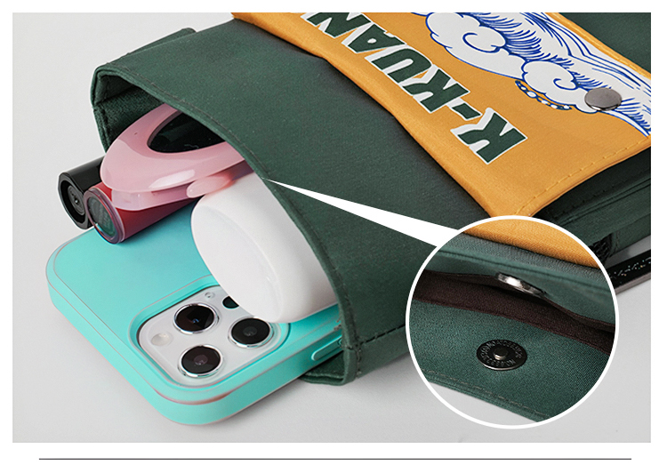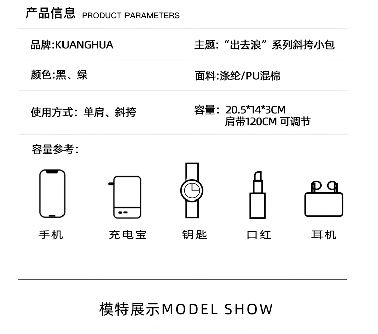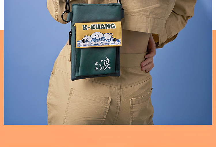哐花村出去浪斜挎单肩手机包-黑色/绿色