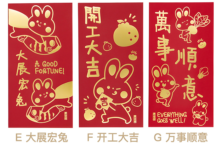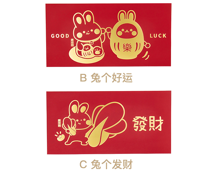 原品兔年烫金红包-Happy兔You/兔个好运/兔个发财/兔飞猛进/大展宏兔/开工大吉/万事顺意