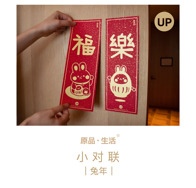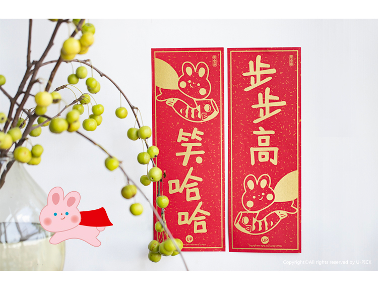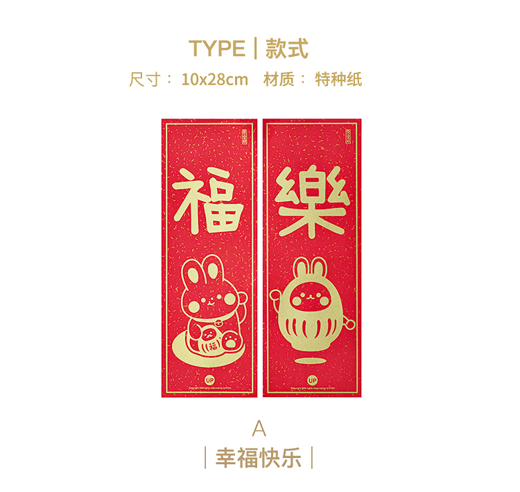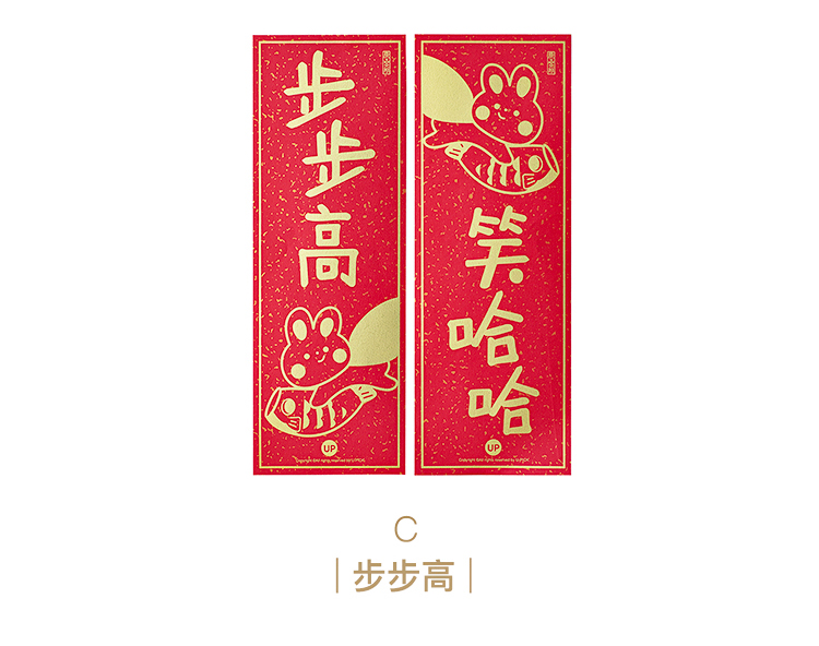 原品兔年小对联-幸福快乐/招财大吉/步步高