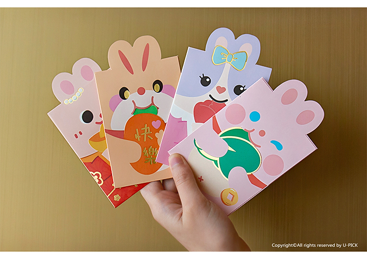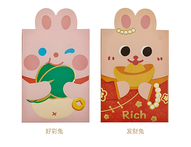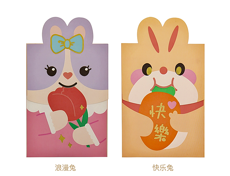 原品兔年小号异形红包-浪漫兔/快乐兔/好彩兔/发财兔