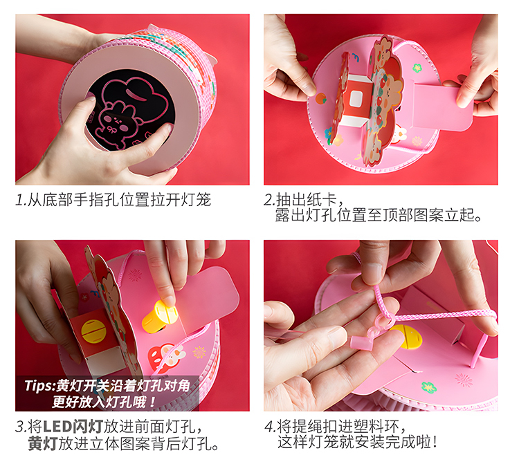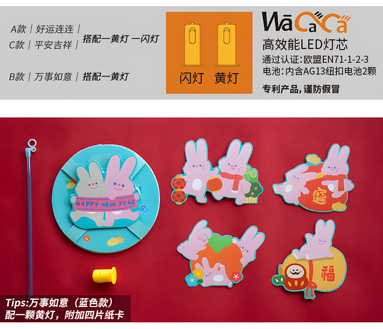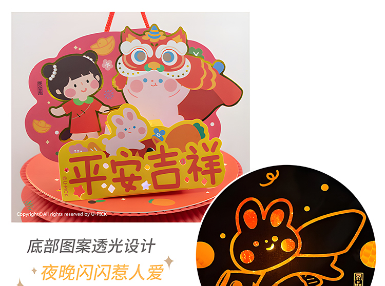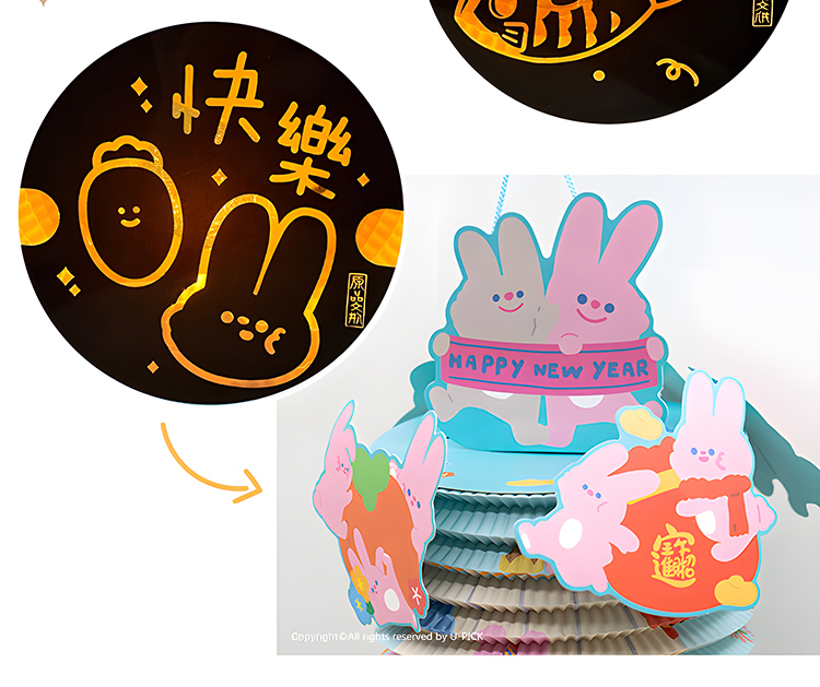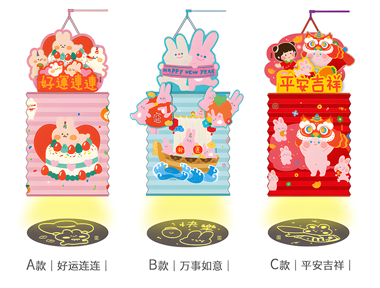 原品兔年立体投影纸灯笼-好运连连/万事如意/平安吉祥