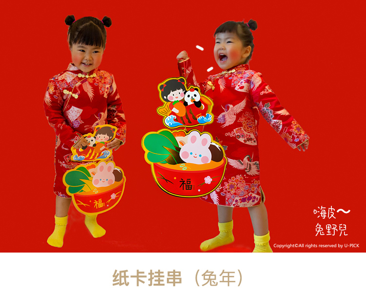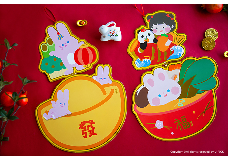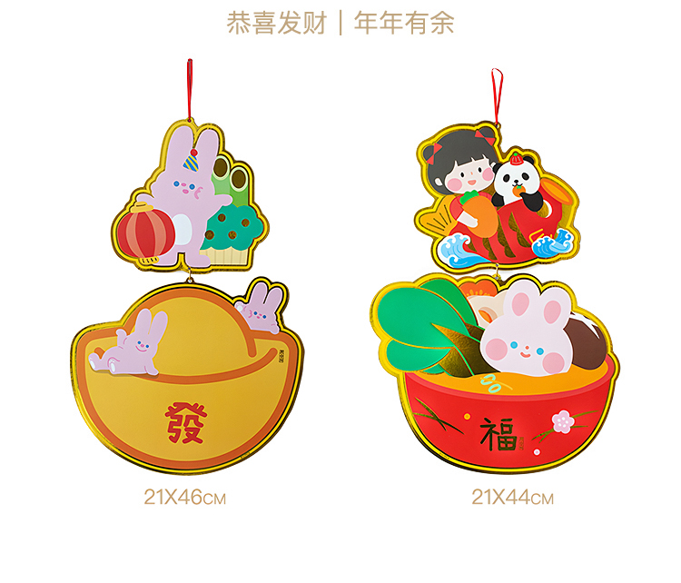 原品兔年纸卡挂饰-恭喜发财/年年有余