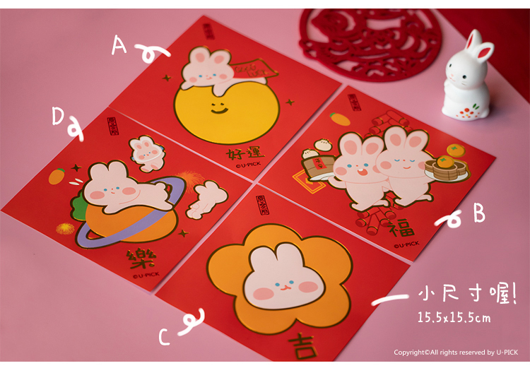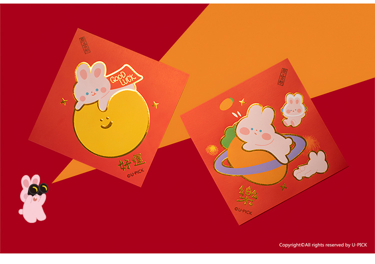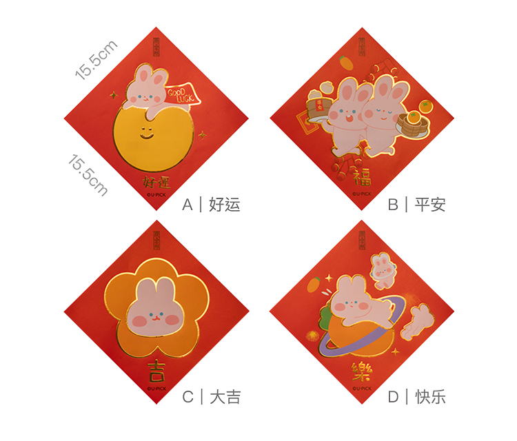 原品兔年彩色小门贴-好运/平安/大吉/快乐