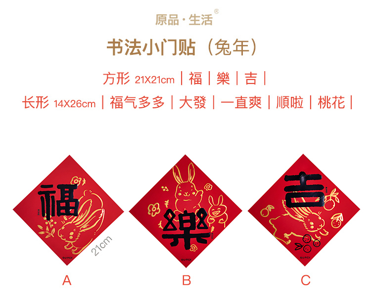 原品书法方形小门贴-福/乐/吉/福气多多/大发/一直爽/顺啦/桃花