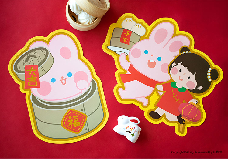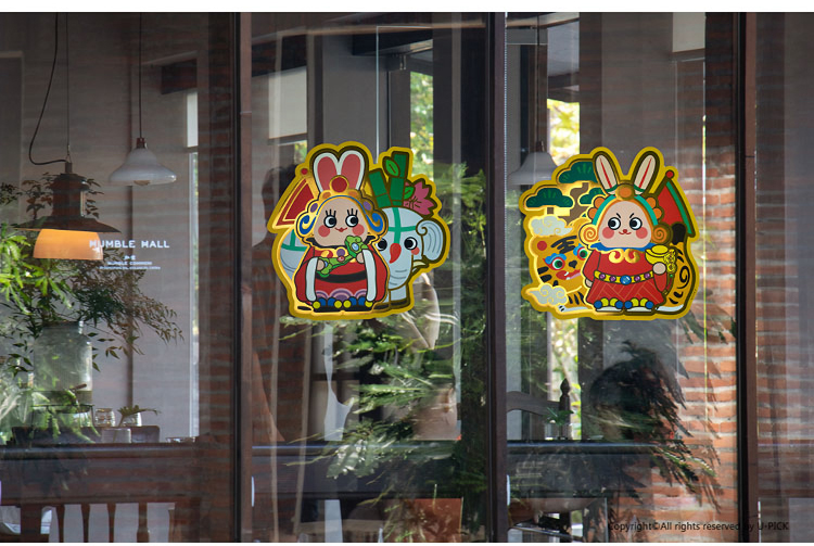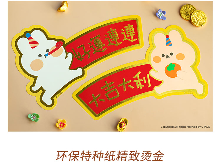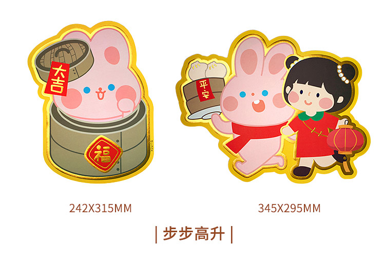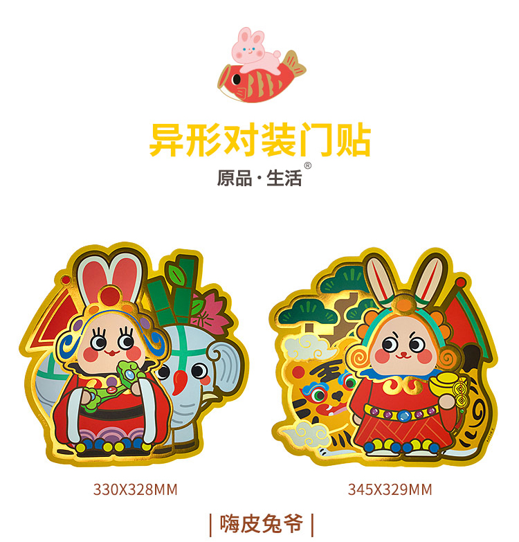 原品兔年异形对装门贴-嗨皮兔爷/恭喜发财/步步高升/好运连连