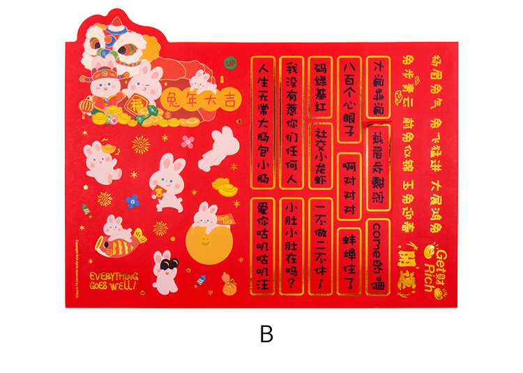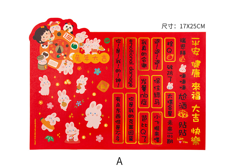 原品兔年吉祥窗花门贴-福A/福B/福C/旺/五福临门/福兔吉祥
