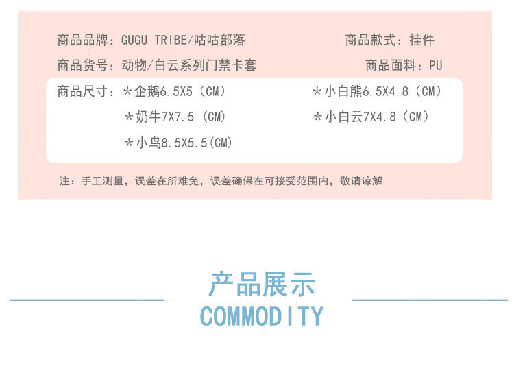 咕咕部落动物白云系列门禁卡套钥匙扣-奶牛/企鹅/小白云/小白熊/鸟儿