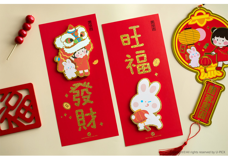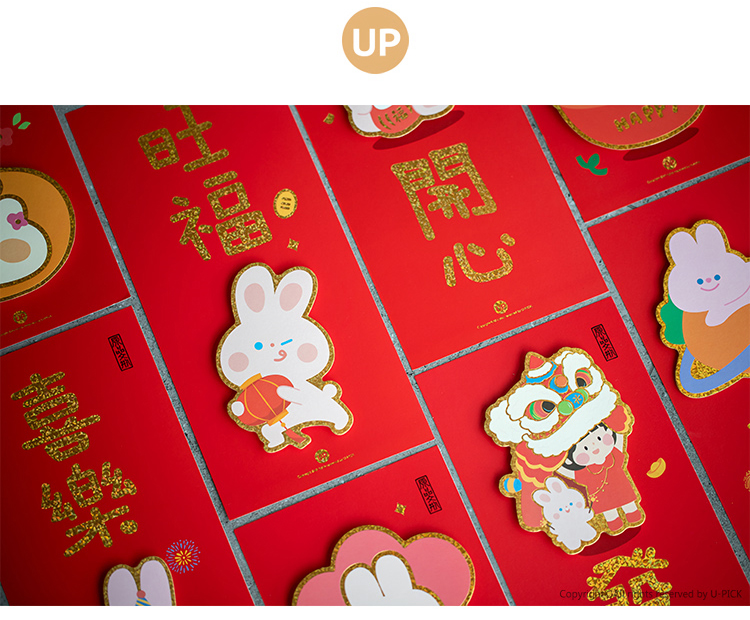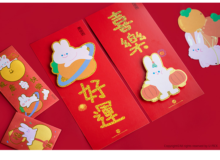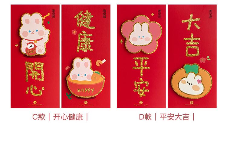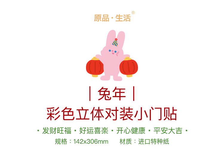 原品兔年彩色立体对装小门贴-发财旺福/好运喜乐/开心健康/平安大吉