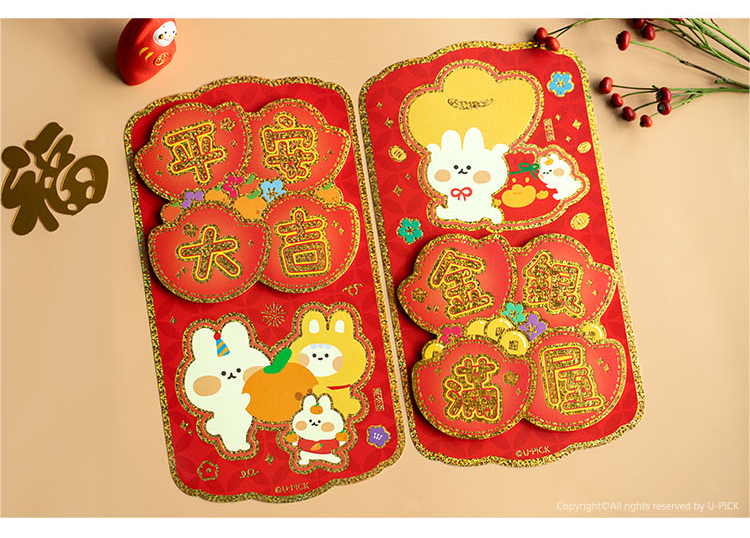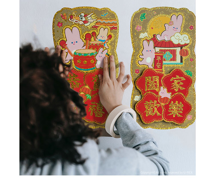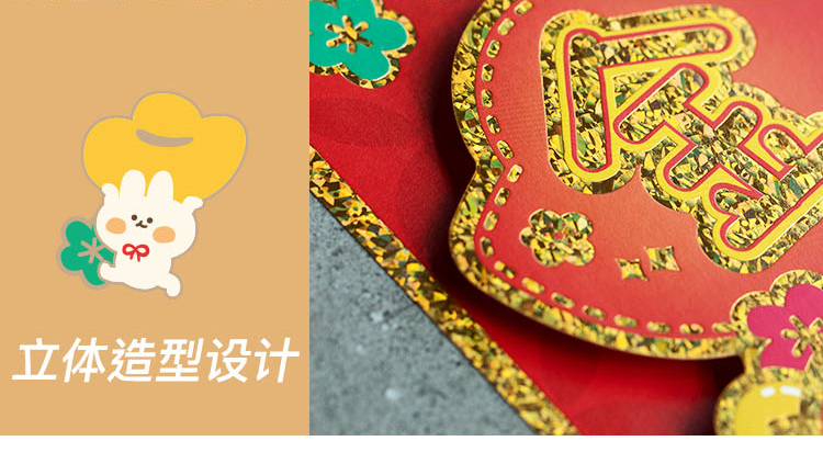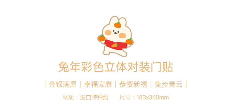 原品兔年异形对装门贴-嗨皮兔爷/恭喜发财/步步高升/好运连连