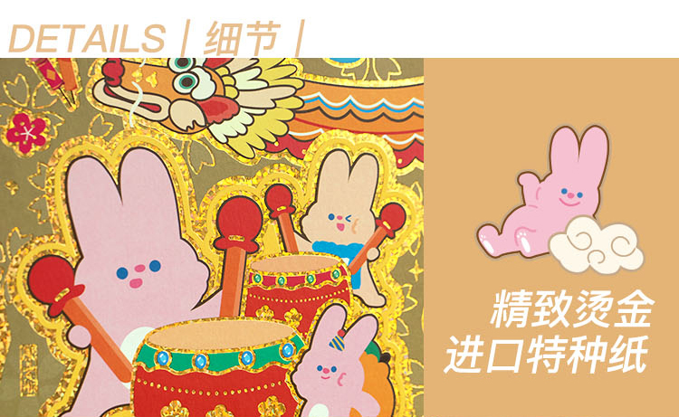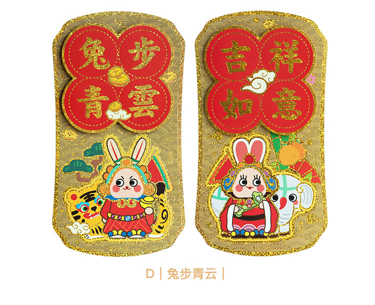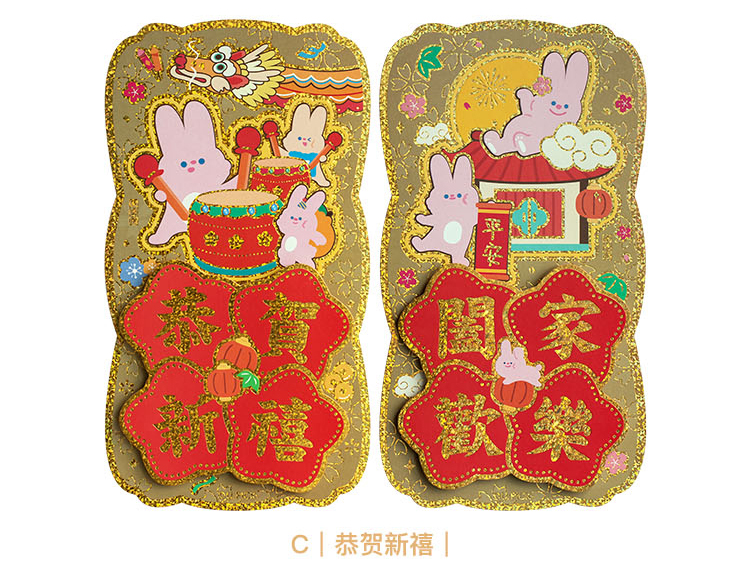 原品兔年彩色立体对装门贴-金银满屋/幸福安康/恭贺新禧/兔步青云