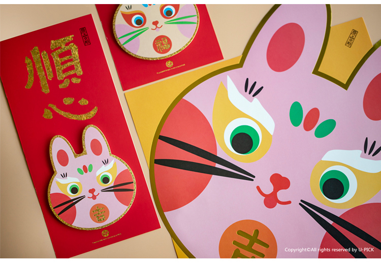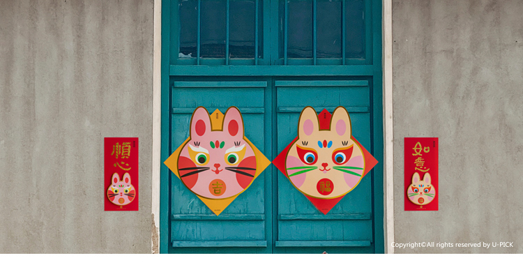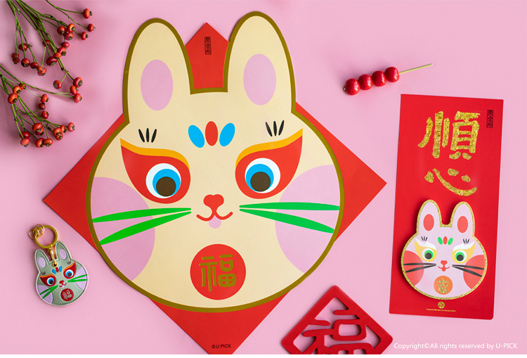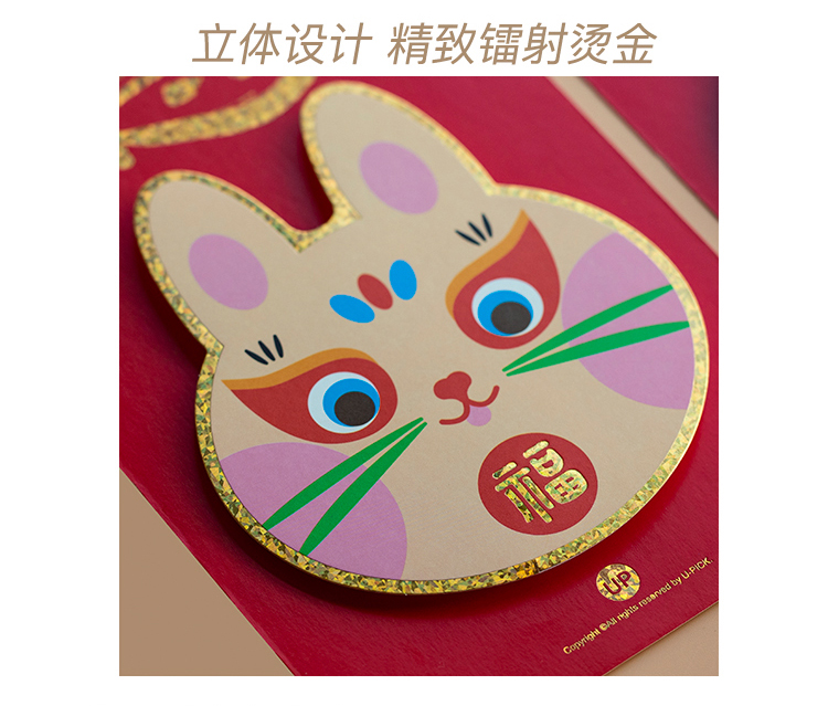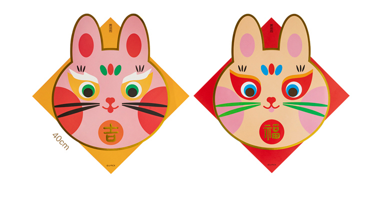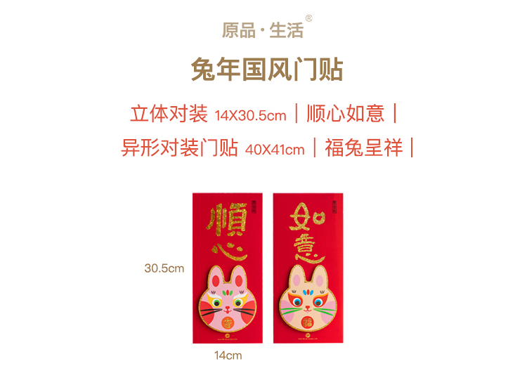 原品兔年彩色立体对装小门贴-顺心如意/福兔呈祥