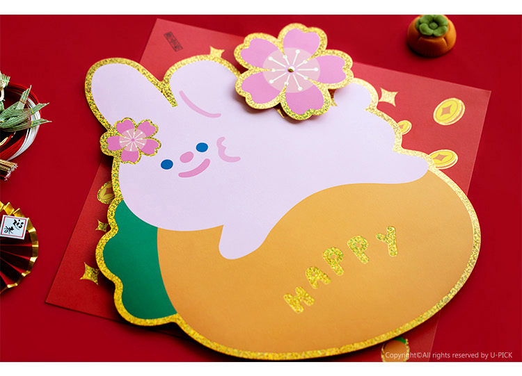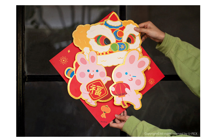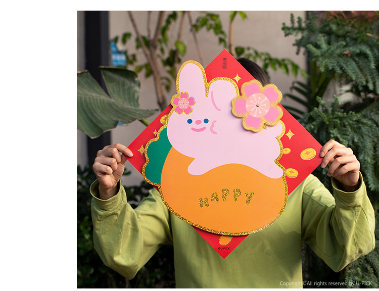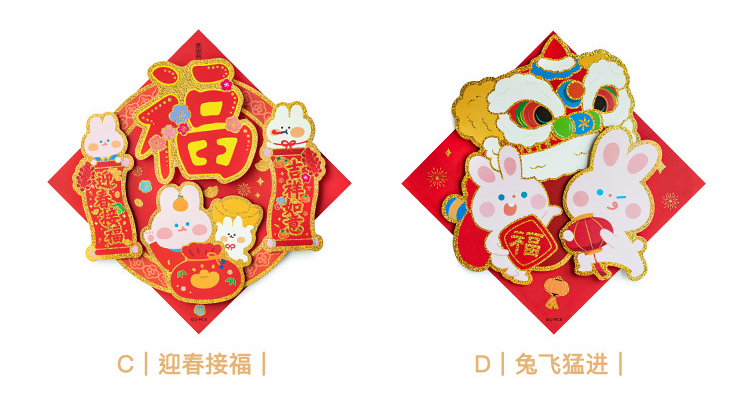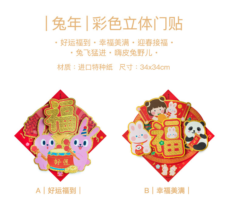 原品兔年彩色立体门贴-好运福到/幸福美满/迎春接福/兔飞猛进/嗨皮兔野儿