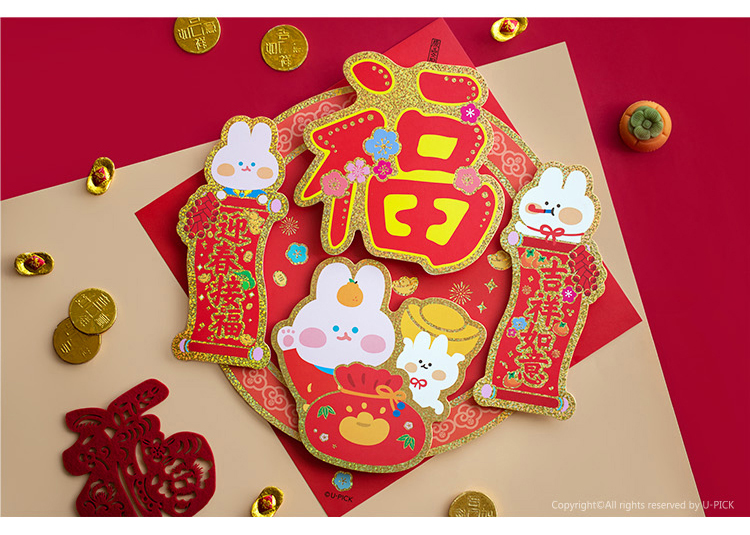 原品兔年吉祥窗花门贴-福A/福B/福C/旺/五福临门/福兔吉祥