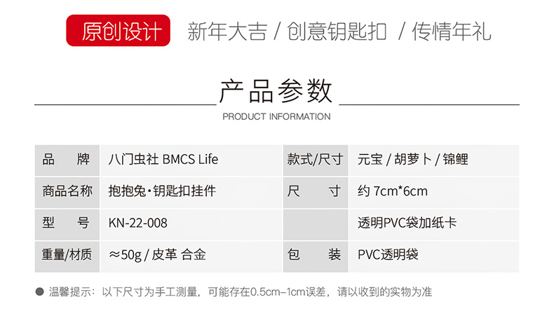 八门虫社抱抱兔挂件钥匙扣-锦鲤/胡萝卜/元宝