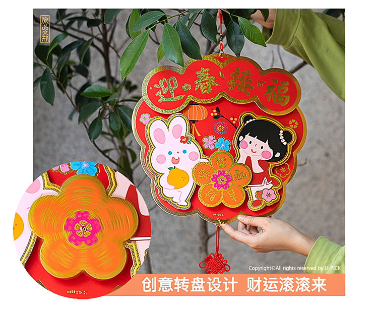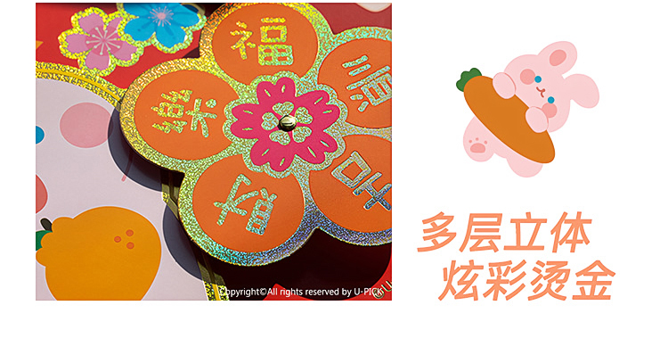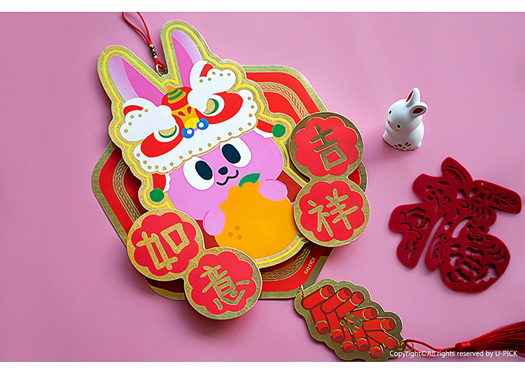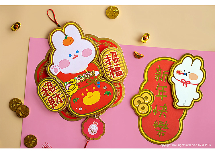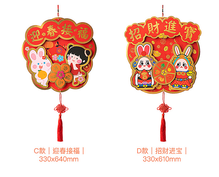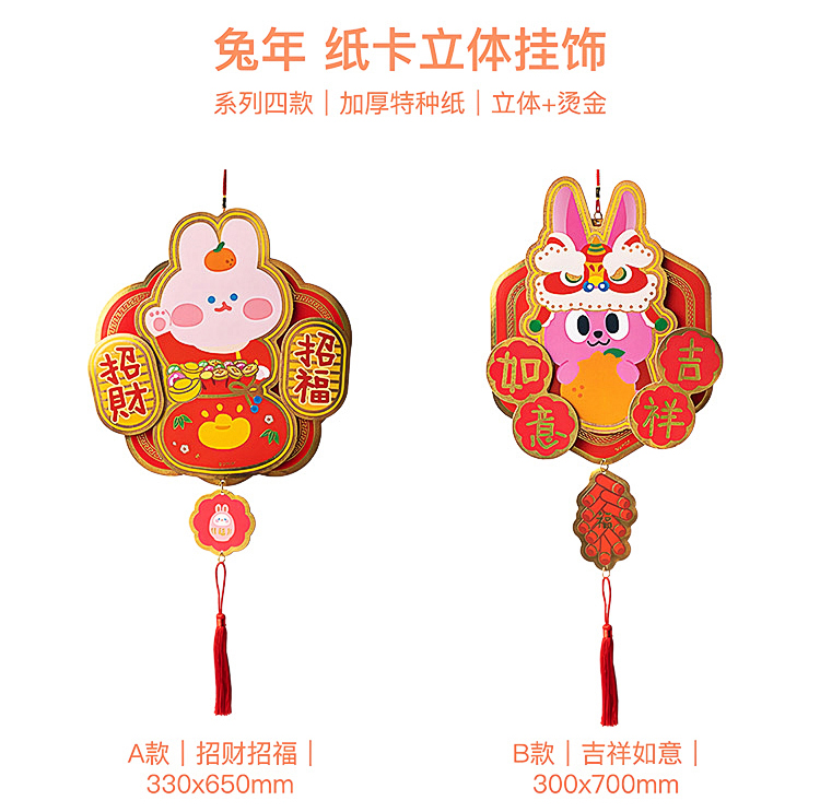原品兔年纸卡立体挂饰-招财招福/吉祥如意/迎春接福/招财进宝