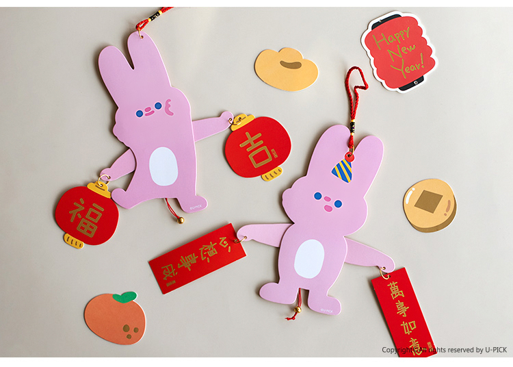 原品兔年纸卡立体挂饰-招财招福/吉祥如意/迎春接福/招财进宝