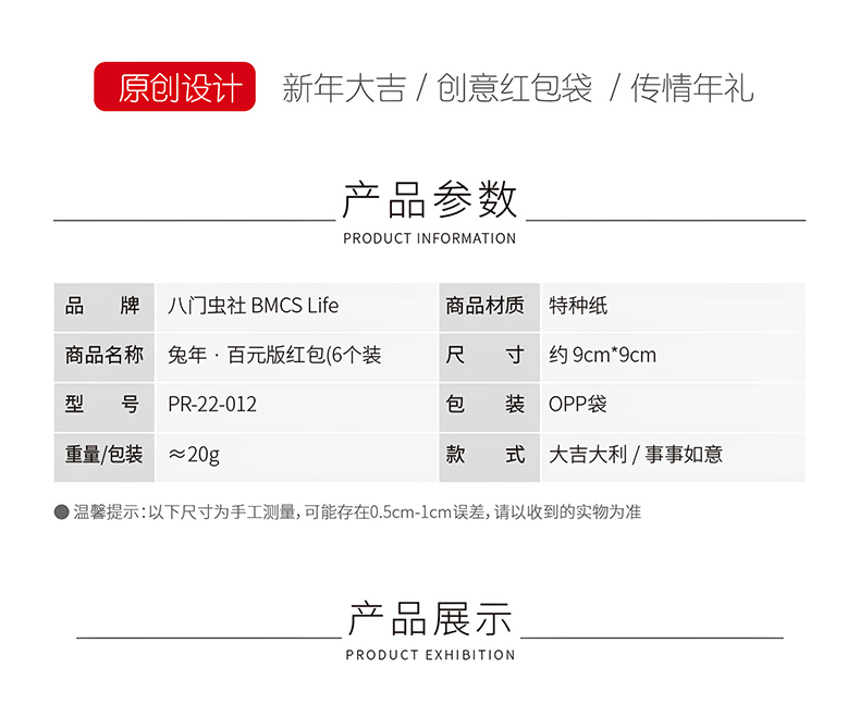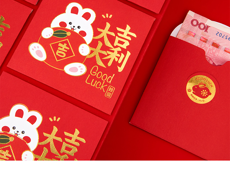 八门虫社兔年百元版红包袋(6个装)-大吉大利/事事如意