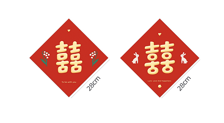 YIZI兔年五福门贴(2张组)-全家福/有口福/胖的福/旺的福/傻人有傻福